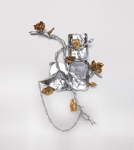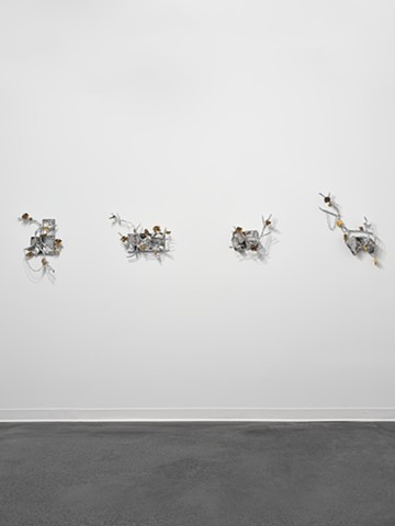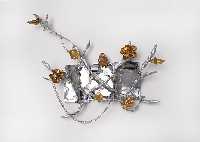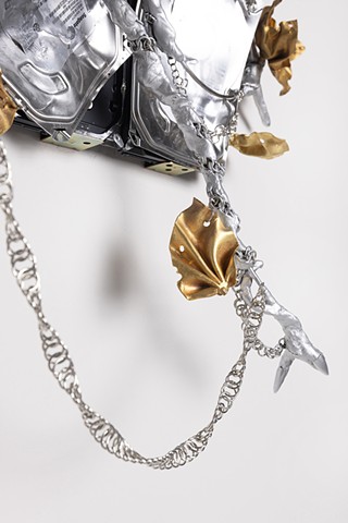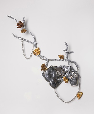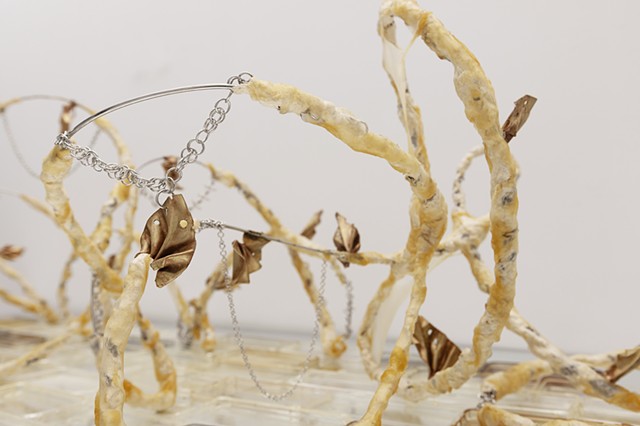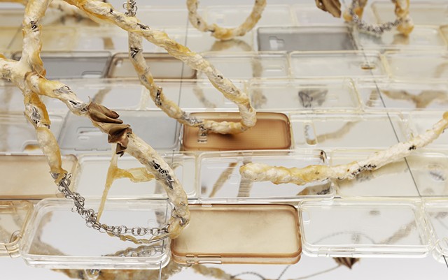 Transparent silicone smartphone case, brass, wire, O-ring, latex, rice husks, mixed media